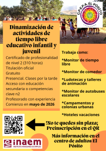 El CPEPA El Pósito volverá a impartir a partir de mayo el certificado de profesionalidad de nivel 2 » Dinamización de actividades de tiempo libre educativo infantil y juvenil» La modalidad será presencial y será totalmente gratuito. Los alumnos podrán acceder con una titulación mínima de educación secundaria o competencias clave N2. El curso comenzará …